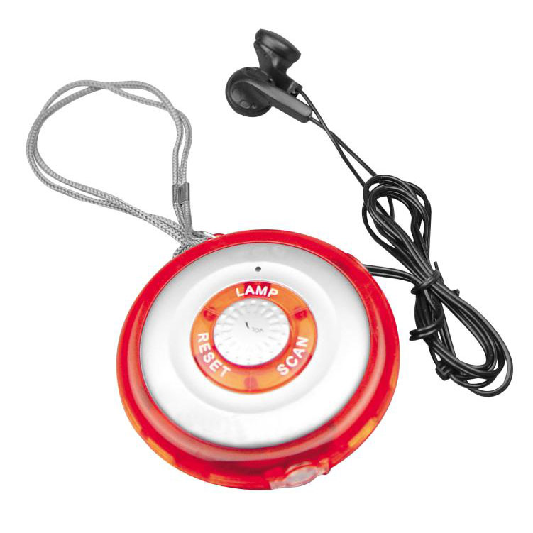 FM rádio s LED lampou, s lanyardom a so slúchadlami