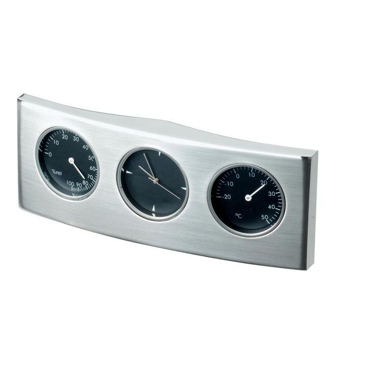 WAVE kovové stolové hodiny s teplomerom a s hygrometrom