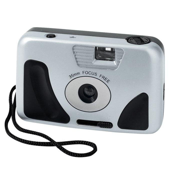 Jednoduchý fotoaparát (35mm) s bleskom a s držiakom na ruku