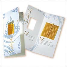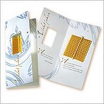 Vianočná pohľadnica s voskovým vcelým plátom a knôtikom. Po zrolovaní plátu dostanete malu vianočnu sviečku.